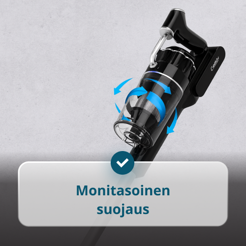 • Monisyklonijärjestelmä – ylläpitää imutehon, vaikka säiliö olisi täynnä.