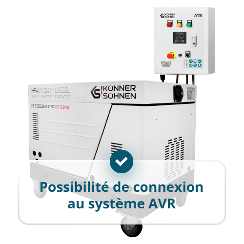 • Connexion ATS (commutateur de transfert automatique) – le groupe électrogène  démarre automatiquement en cas de coupure de courant, garantissant une alimentation électrique ininterrompue.
