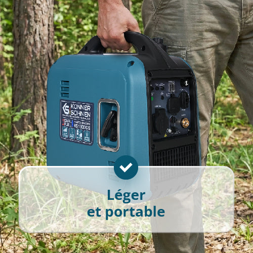 | Composants* | Groupe électrogène, Emballage, Manuel d'utilisation, Clé pour bougie, Tournevis PH2 6,0 mm, Pochette pour accessoires, Clé plate 8×10 mm, Prise 230V 16A, Tuyau pour bouteille de gaz avec détendeur. |