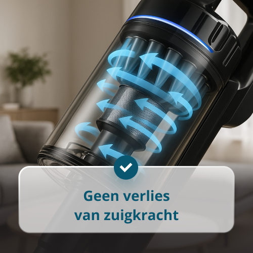 • Multi-cycloonsysteem – behoudt de zuigkracht, zelfs wanneer de container vol is.