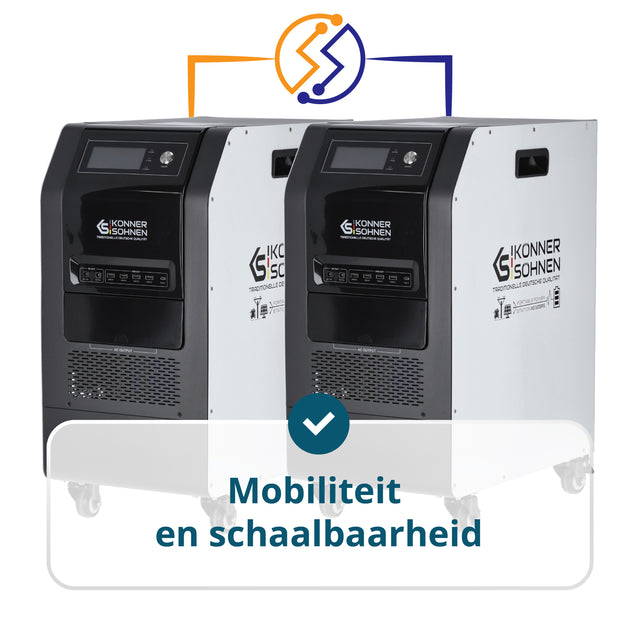 • Mobiliteit en schaalbaarheid – de mogelijkheid om een 48V-DC generator of extra batterijen aan te sluiten, of om twee identieke stations te koppelen (bijv. 2 × KS 5200PS), gecombineerd met draagbaarheid, creëert een flexibel hybride systeem voor verschillende toepassingen – voor thuis, zakelijk, of noodgevallen.