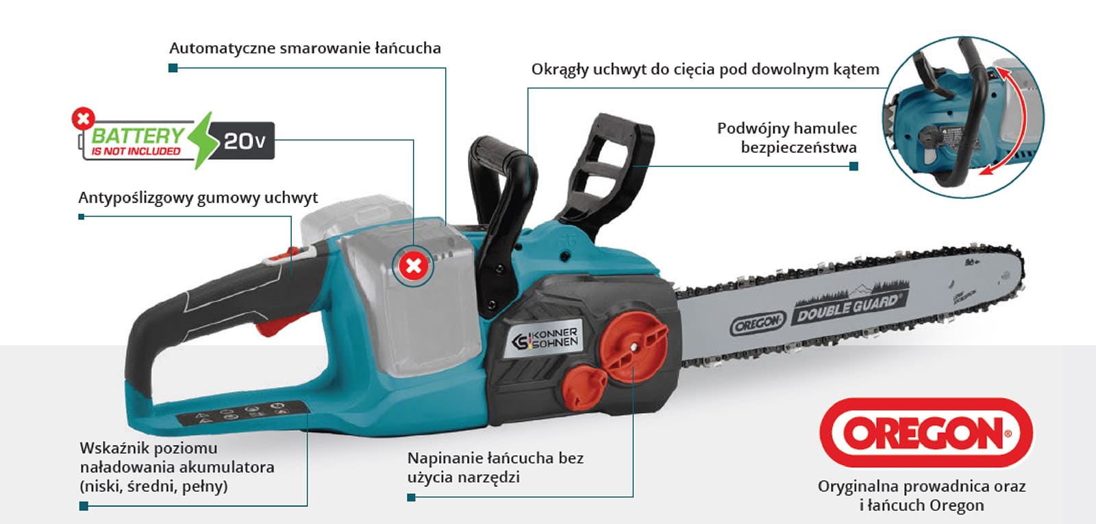 | Grubość ogniwa łańcucha | 050” (1.3 mm) |