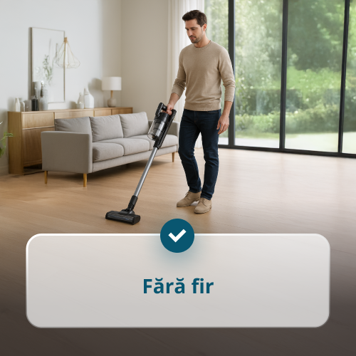 • Fără fir, elegant și ergonomic – oferă libertate maximă de mișcare în timpul curățeniei.