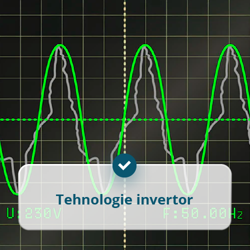 • Tehnologie invertor cu putere mare. Unitatea electronică integrată cu control prin microprocesor gestionează funcționarea generatorului și asigură tensiune de ieșire stabilă 230V 50Hz cu undă sinusoidală pură, ideală pentru echipamente electronice sensibile.