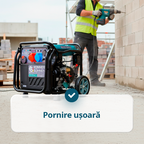 • Sistem VTS (commutator tip tensiune). Generatorul este echipat cu sistemul VTS – permite funcționarea în regim monofazat și trifazat cu putere maximă de 8,5 kW.