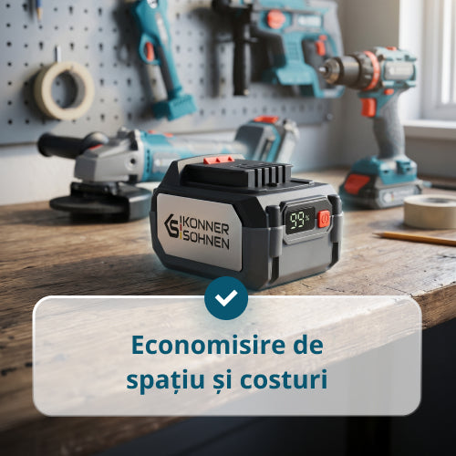 • Sistemul unic de acumulatori - un singur acumulator potrivit pentru toate uneltele din seria 20V K&S, economisind bani și simplificând utilizarea.