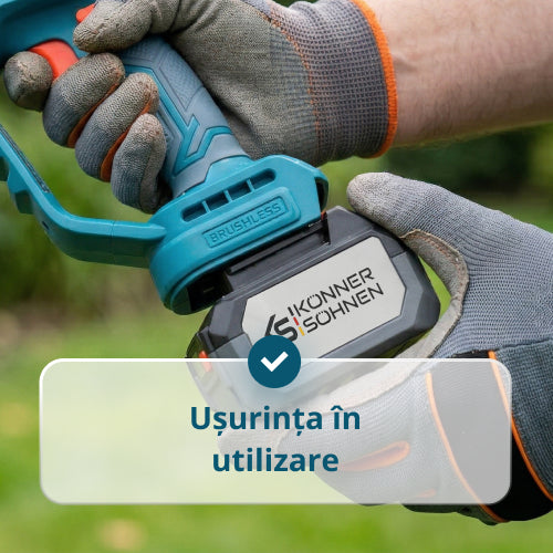 • Maximă rentabilitate la achiziția setului - achiziționând setul complet de echipamente de grădină cu acumulator pentru îngrijirea grădinii: tăietor de tufe, aspirator-suflant și încărcător dublu, primești 2 acumulatori 20V 4Ah cadou.