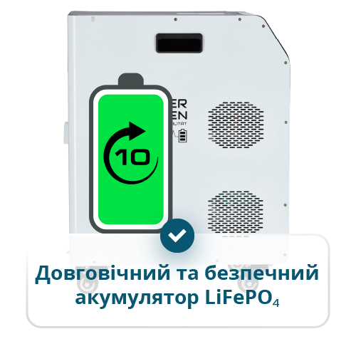 | Тип акумуляторної батареї: | LiFePO₄ (літій-залізо-фосфатний акумулятор) |